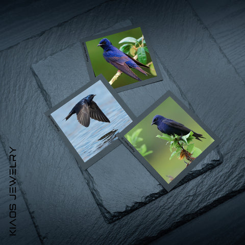 The Dark Purple Martin Earrings take inspiration from the regal purple feathers of the Purple Martin, a symbol of strength and grace.